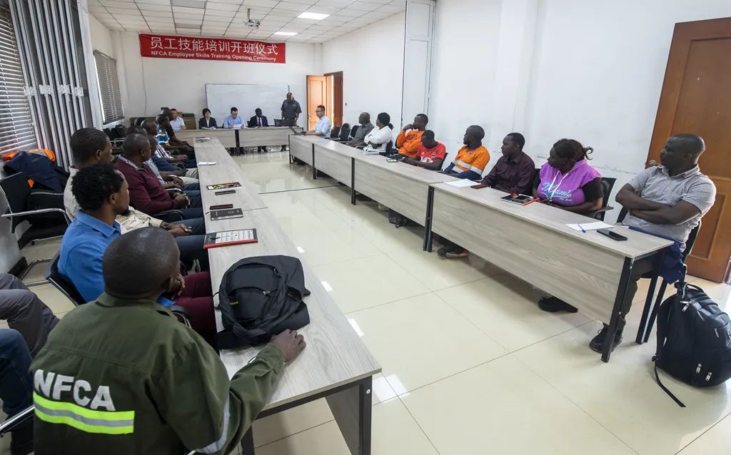 开班仪式于中午12点20分正式开始,参会人员包括中色非矿副总经理徐来祥、赞方总经理助理Dean Mwelwa以及首批参加培训的电工20人,以及中赞职院负责人和授课讲师。