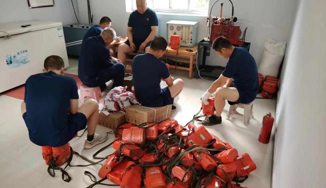 中色红透山救护队青年党员正在维修井下自救器
