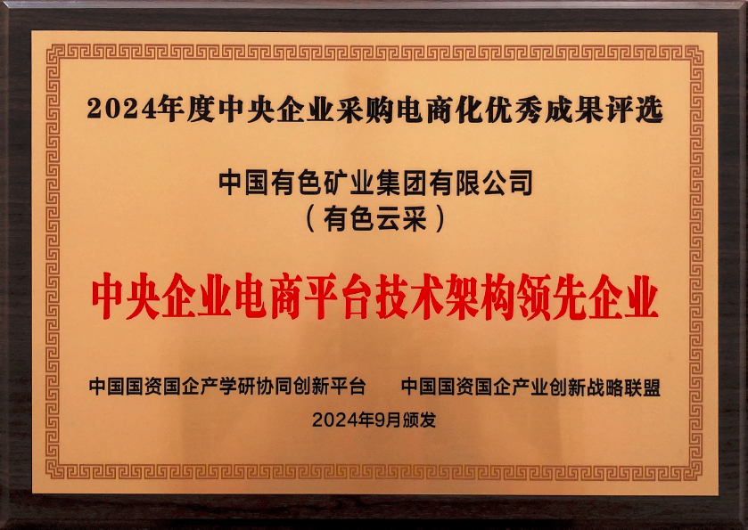 在9月20日“第八届中央企业采购电商化生态建设高峰论坛”举办期间,中国有色集团以自主建设并运营的“有色云采”电子商城在2024年中央企业电商化采购优秀成果评选中荣获“中央企业最佳采购商城示范企业奖”和“中央企业电商平台技术架构领先企业奖”。这是继去年获得“电商化采购运营模式领先企业奖”以来,中国有色集团在该项评选中再次获奖。