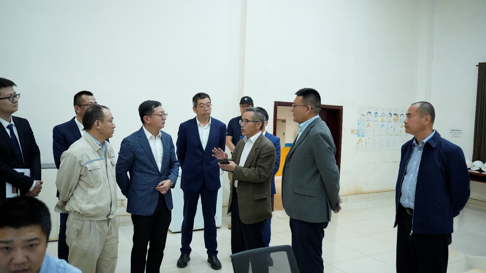 在调研工作现场,徐和麟书记转达了中国有色集团董事长奚正平、总经理张晋军对赵斌大使的问候,并对中国有色集团海外项目的总体情况、公共安全治理、职工生活、文化宣传、社会公益等方面开展的工作进行了介绍;孟志国董事长对卢阿拉巴铜冶炼的企业基本情况、安保措施、合规经营等方面进行了汇报;杨伟总经理对公司的生产经营情况、工艺流程、技术改造等重点工作进行汇报。