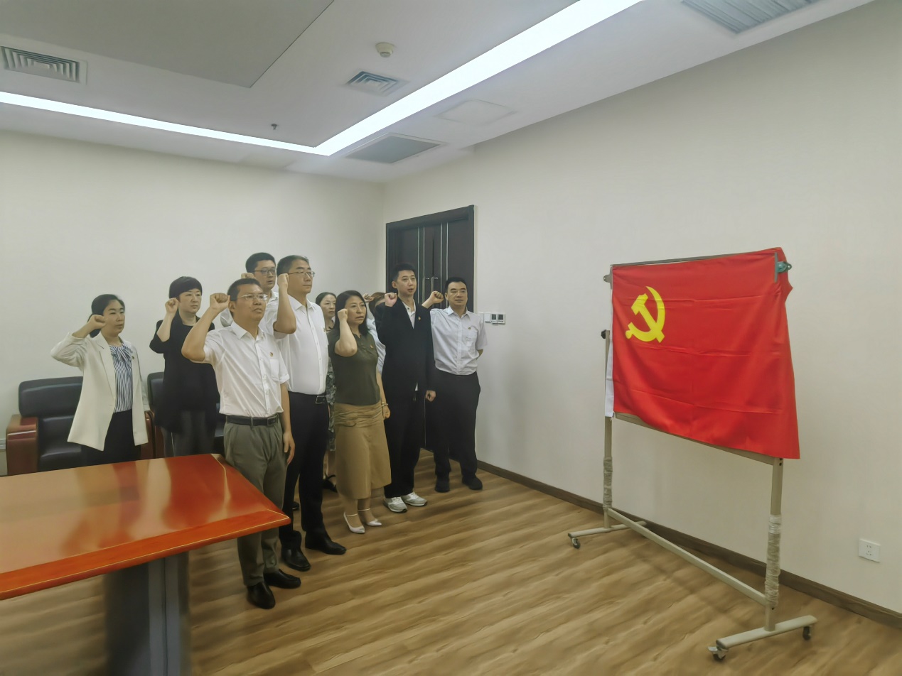 重温一次入党誓词。7月1日,在支部书记左跃新同志的带领下,全体党员同志肃立在鲜艳的党旗下,举起右手,庄严宣誓,再次向党重申矢志不渝的誓言。