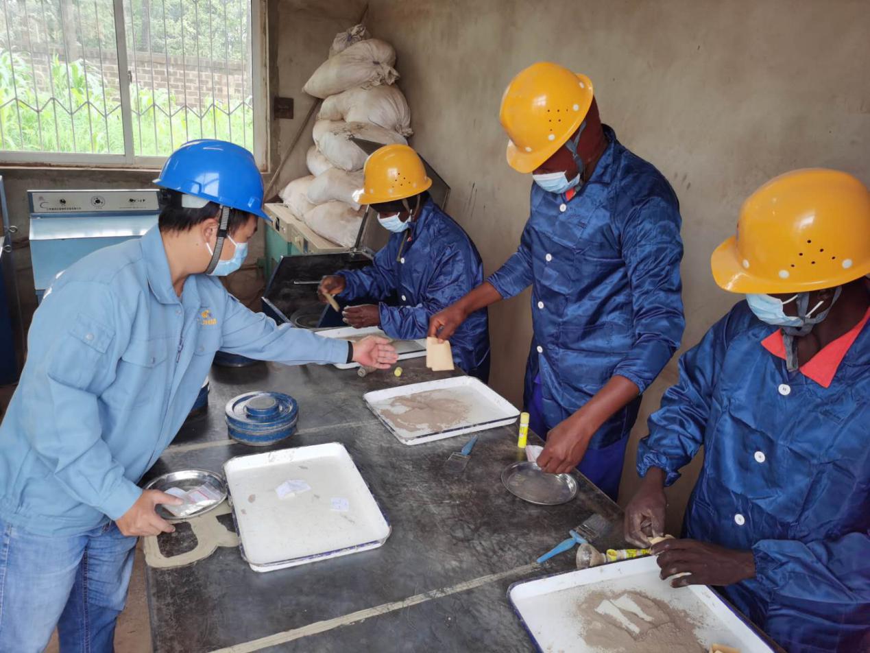 图为香港控股原料部中方员工全流程实时监控磨样样品分装操作过程