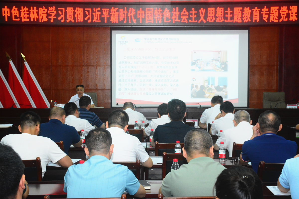 杨国高强调,主题教育开展以来,在集团公司党委第一巡回指导组的悉心指导下,公司党委牢牢把握“学思想、强党性、重实践、建新功”的总要求,按照集团公司党委注重贯穿“一条主线”、突出“两个定位”、抓好“三个融合”、做到“四个同步”、实现“五个增强”的基本要求,明确了公司开展主题教育要夯实“一个发展定位”、努力建设“两个一流”、坚持“三个第一”、力争“四个实效”的任务目标,要把理论学习、调查研究、推动发展、检视整改贯通起来,有机融合、一体推进,坚持学思用贯通、知信行统一,努力把习近平新时代中国特色社会主义思想转化为坚定理想、锤炼党性和指导实践、推动工作的强大力量,引导广大党员干部职工不断做强做优大地质,做精做专新材料,推动 “桂林院10条”和“1011工程”目标逐步落实落地,在以学铸魂、以学增智、以学正风、以学促干方面取得实实在在的成效,推动主题教育不断往深里走、往实里走、往心里走。
