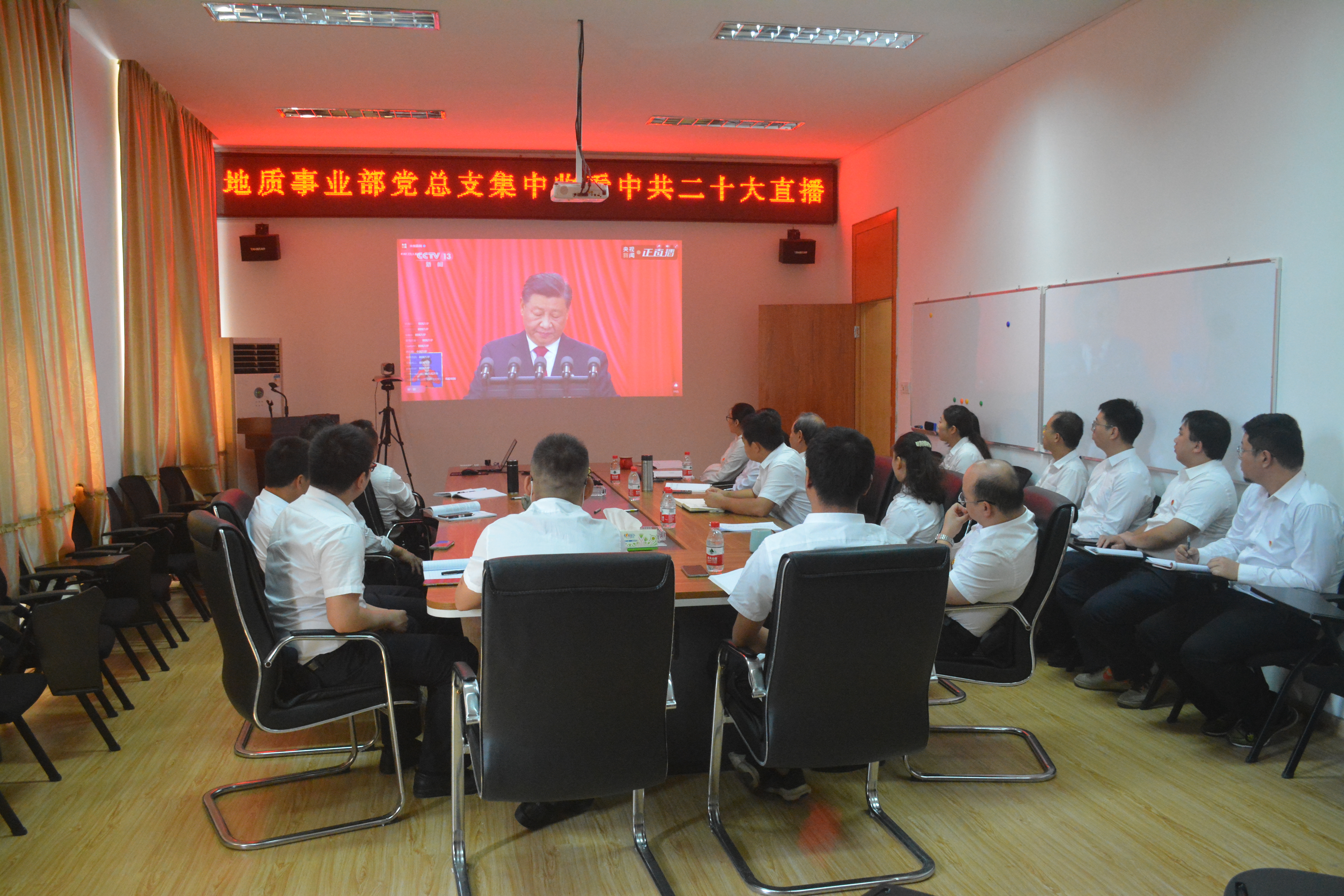 地质事业部党总支部组织全体党员、入党积极分子集中观看二十大开幕式直播