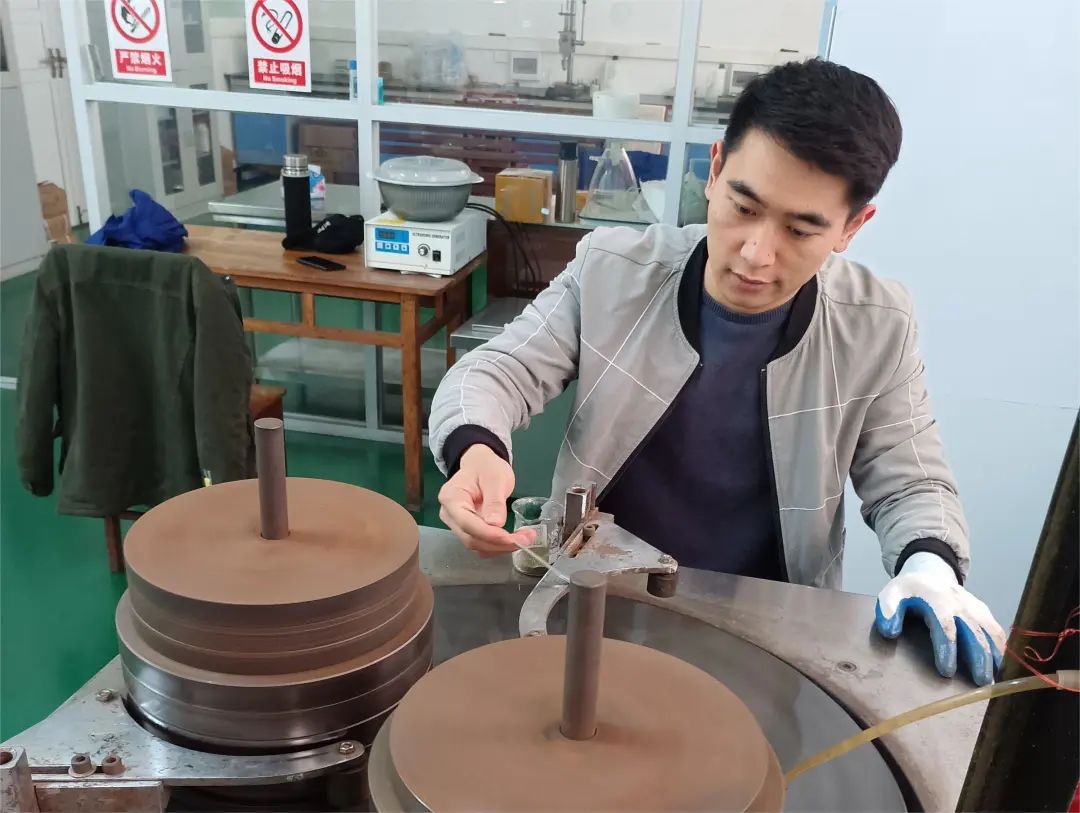 2018年末,入职刚半年的莫培程与同事共同承担聚晶金刚石(PDC)复合片的研发任务。当时,PDC复合片核心技术还掌握在国外相关机构的手中。面对新任务、新挑战,他开始与时间赛跑,把一摞摞有关PDC复合片的文献和书籍放在办公室和床头边,抓紧每一分每一秒进行学习。从原材料配方,到处理工艺、组装工艺,再到烧结参数,他和团队认真思考每一个步骤,分析成败得失。经过2年多上百次的实验与改进,最终实现了关键技术的突破,成功研发出PDC复合片。他还根据密堆积理论推算出PDC复合片催化剂的控制方法,成功合成高质量PDC复合片,为企业实现了该产品首笔销售收入,也把我国在PDC复合片领域的研究提升到了新高度。