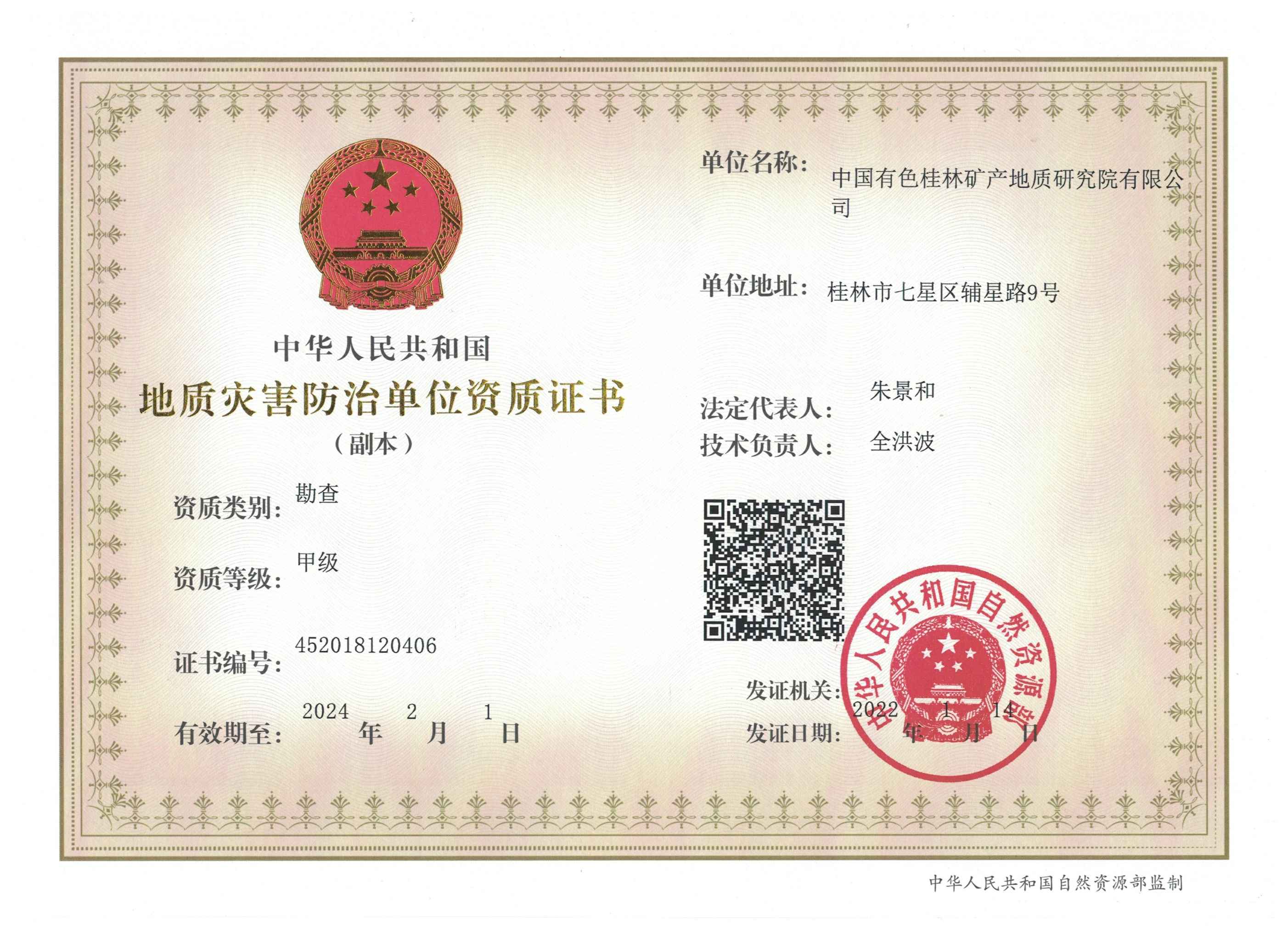 2 | 地质灾害防治勘查 证书编号:452018120406 | 甲级 | 2018.2.28-2021.2.28 2021.2.2-2024.2.1 | 中华人民共和国国土资源部 | 博泰 环保所 | PA捕鱼 |