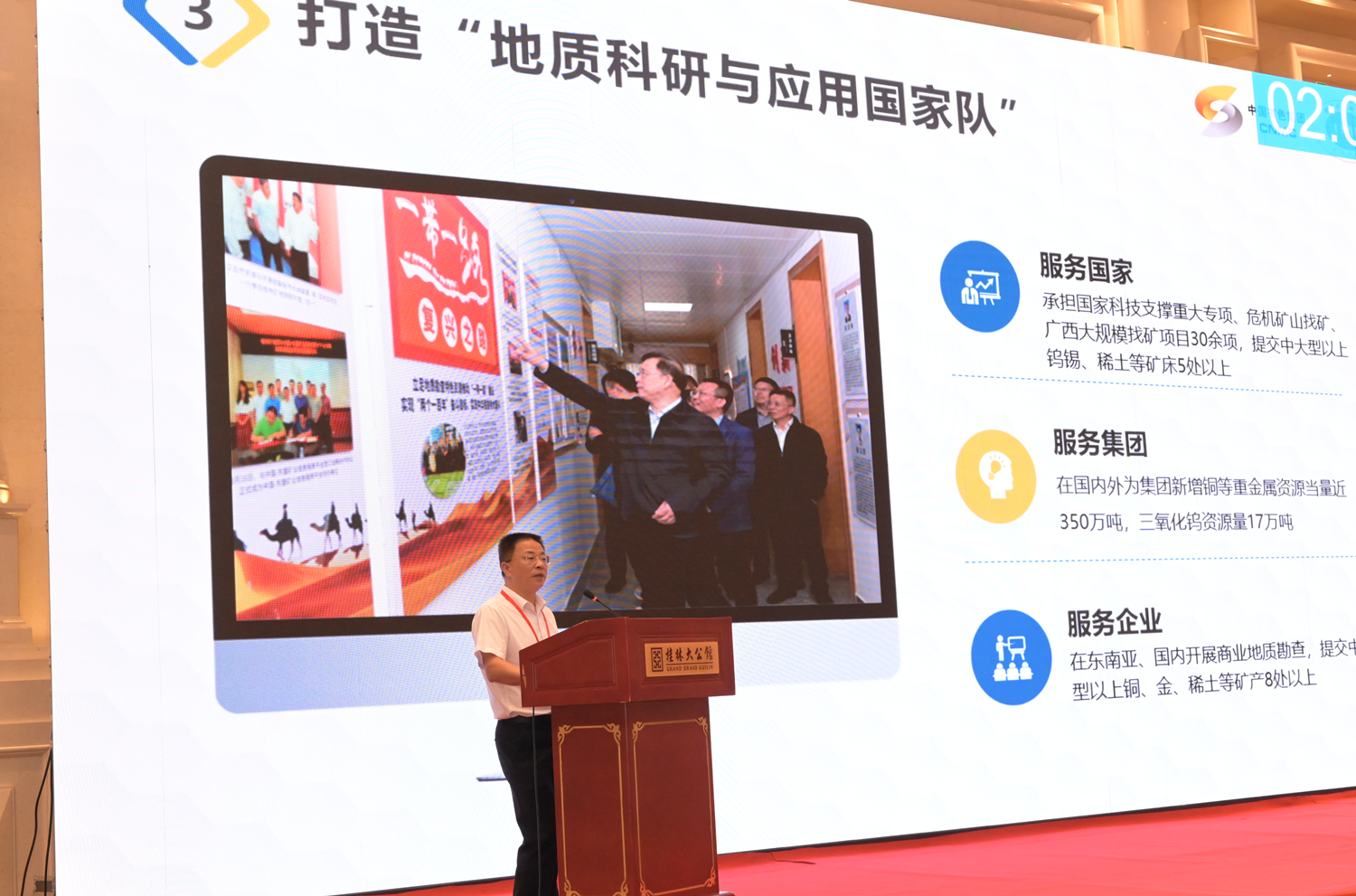 第十三届全国政协常委,中国有色金属工业协会党委书记、会长葛红林出席会议并讲话;中国有色矿业集团有限公司党委书记、董事长奚正平,桂林市副市长王昕出席会议并致欢迎辞。PA捕鱼党委书记、董事长、总经理杨国高、矿冶科技集团有限公司党委书记、董事长韩龙,中国有研科技集团有限公司党委副书记王兴权,广东省科学院院长陈为民等出席会议。中国有色金属工业协会党委常委、常务副会长贾明星主持会议。