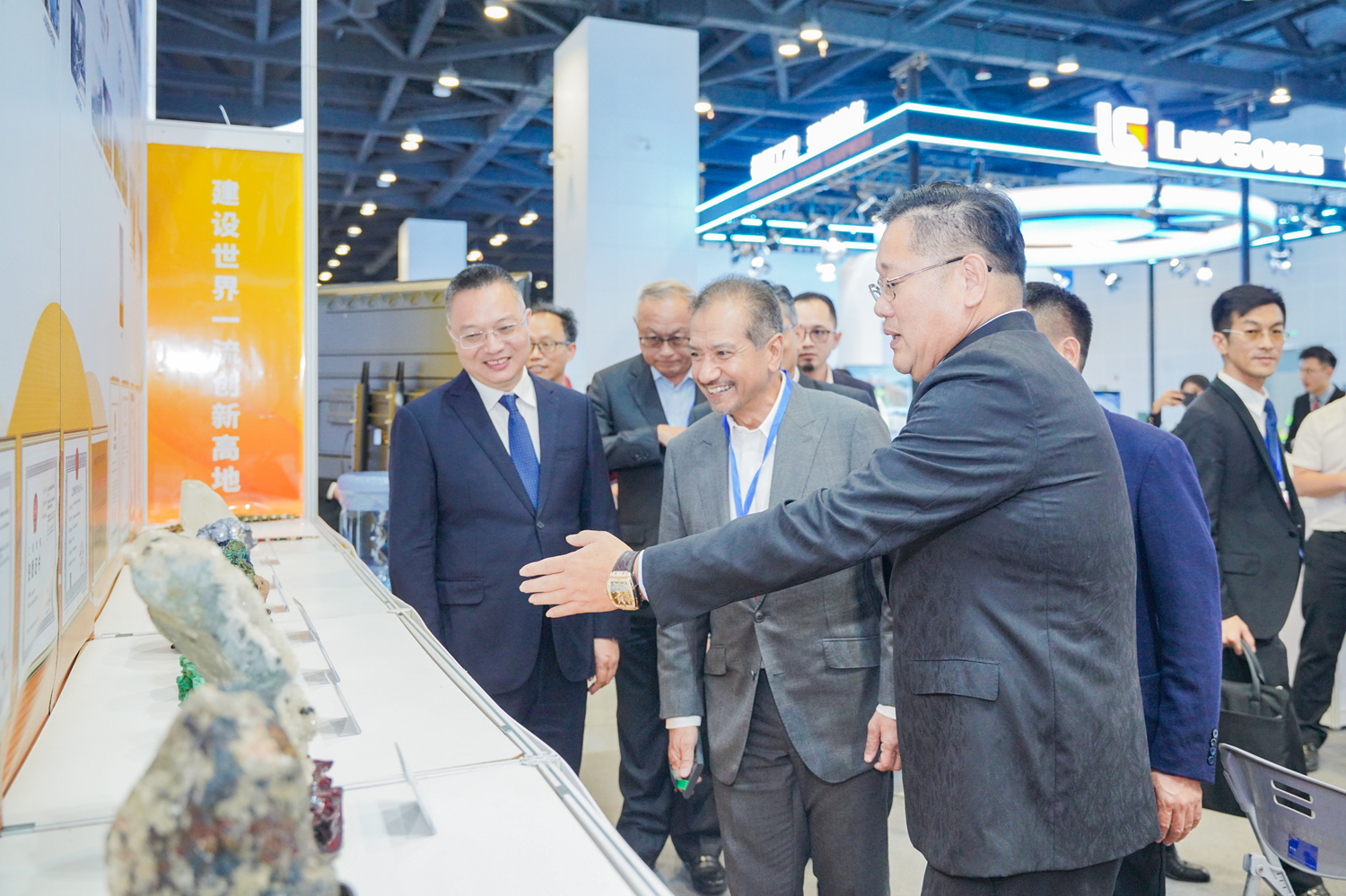 PA捕鱼在论坛主场区搭建专业展厅,并配备专业英语翻译人员,向参会企业及东盟各国全面宣传公司特色和优势,引来众多企业咨询交流,马来西亚丁加奴洲国王苏丹、AK矿业公司董事长白国森一行专程到展厅参观,新加坡、印度尼西亚等相关企业人员咨询交流矿业合作事宜,现场参展人员洛泽不绝,百余本宣传册2天内被索要一空,30余件矿石标本引来众多参展人员驻足观摩拍照、咨询交流,一定程度上促进了公司全方位、多领域的交流与合作,现场反响热烈、效果显著,展现了公司良好的品牌优势、科研优势和带动优势,,提升了公司在矿业领域的知名度与影响力。