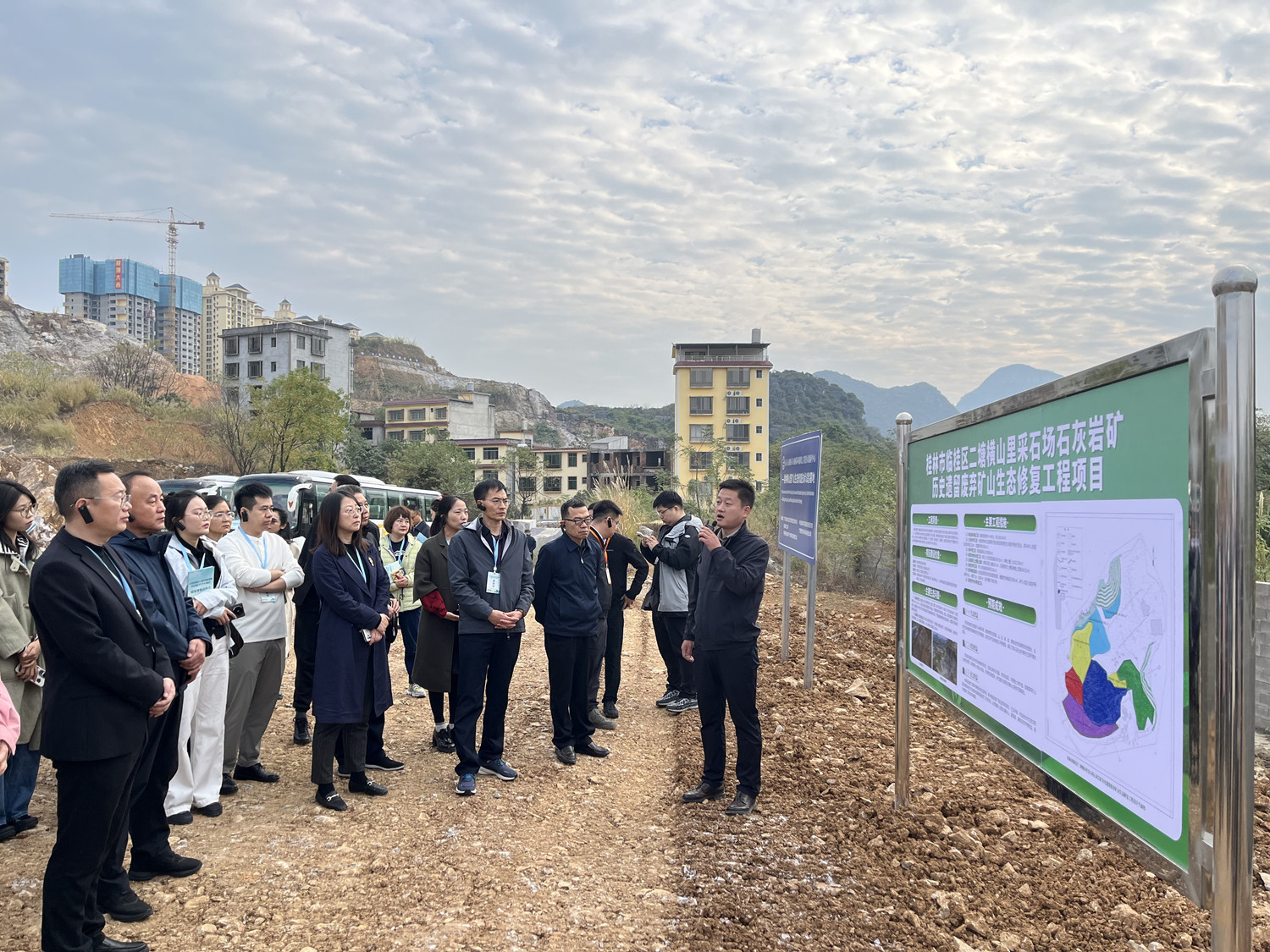 11月21日至22日,2024年自然资源部生态修复领域科技创新平台学术交流会在桂林召开。PA捕鱼生态环境事业部实施的“临桂区二塘横山里采石场石灰岩矿历史遗留废弃矿山生态修复工程”(以下简称“横山里项目”)作为大会的实地考察观摩点,自然资源部科技发展司副司长辛红梅、国土整治中心副主任仲崇峻、桂林市副市长龙杏华等领导分别到场指导,全国各地100多位专家学者参加现场观摩。PA捕鱼党委委员、副总经理赵延朋,生态环境事业部负责人及项目骨干参加交流会。