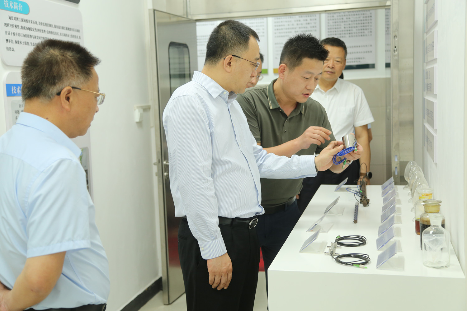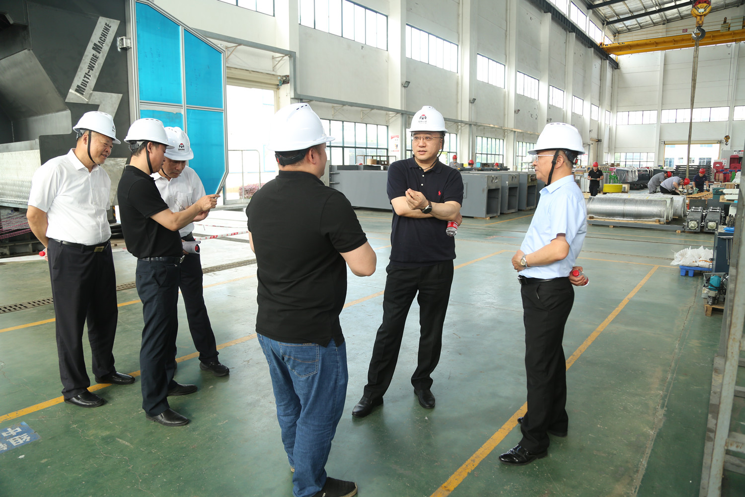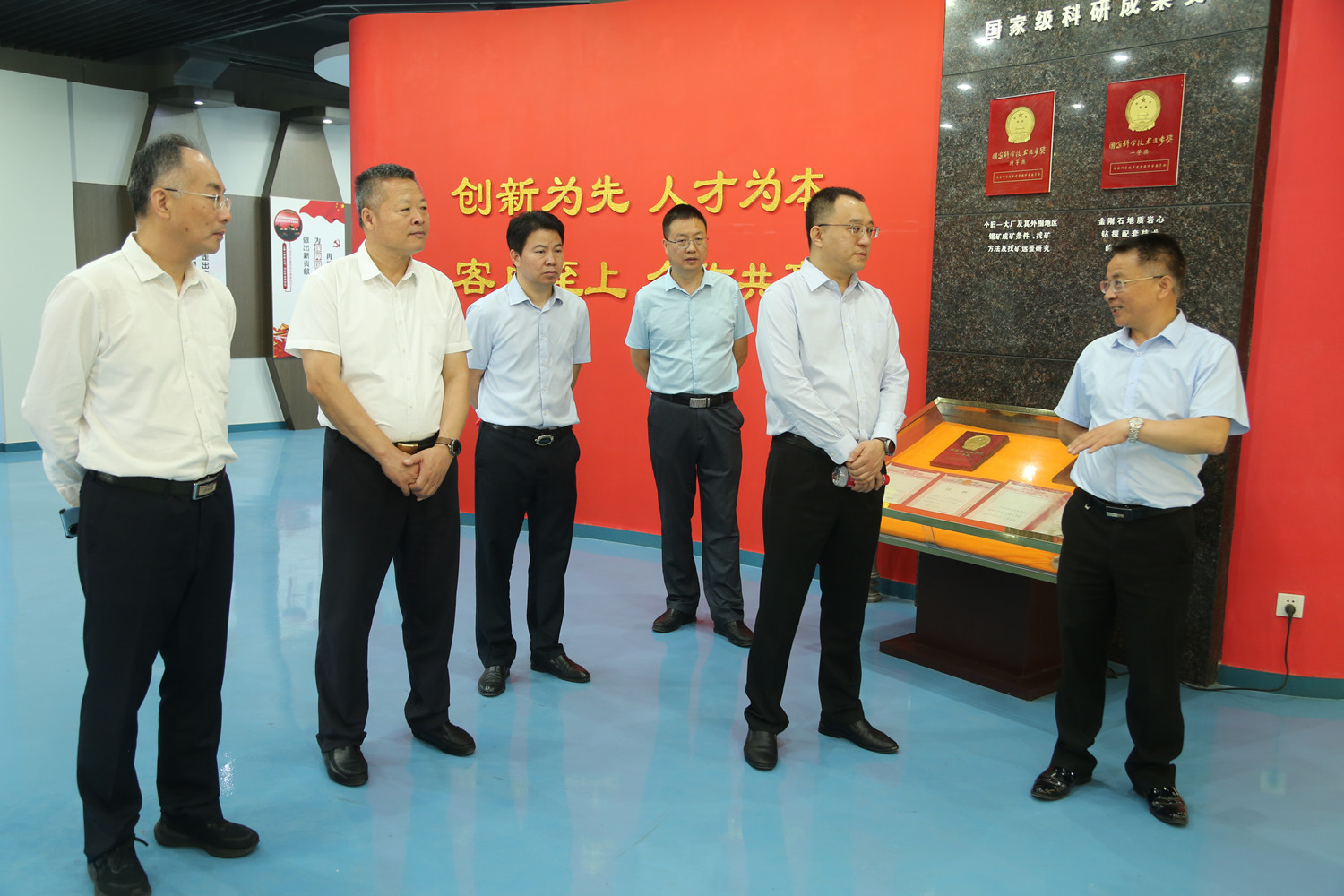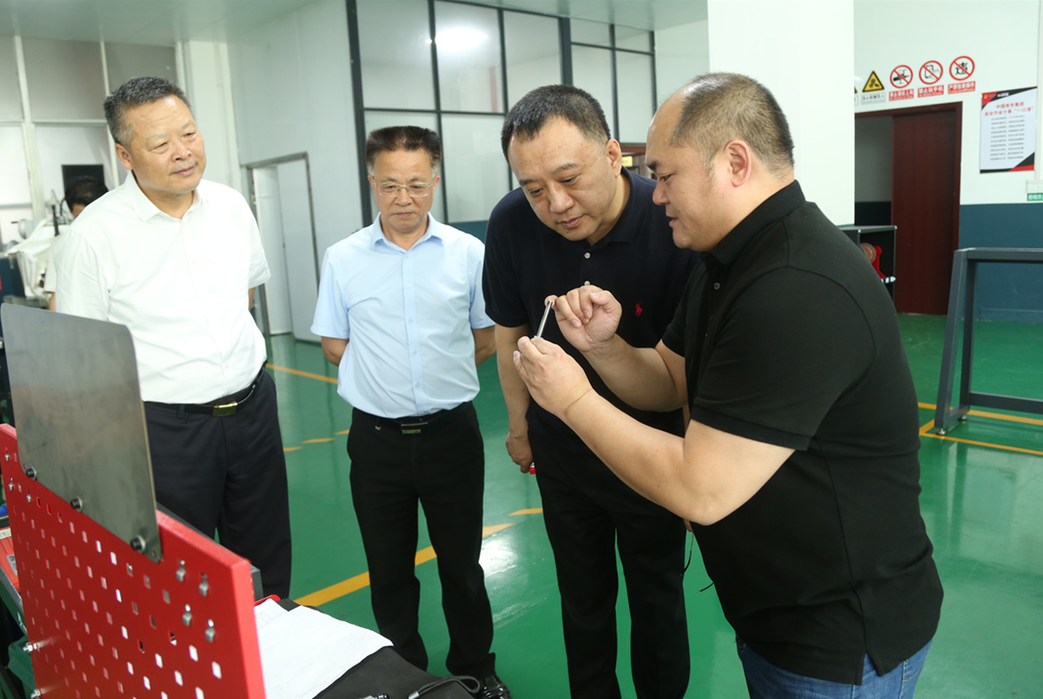 范圣权一行先后深入特邦新材超硬精密刀具、金刚石绳锯、锯片等产品生产车间,工程中心硅碳负极材料生产线,百锐光电水热法KTP晶体生长区及实验室,地质事业部、生态环境事业部及分析测试中心实验室等基层一线进行融入式调研,全面了解了PA捕鱼各业务板块特色特点、产品生产与销售、市场经济效益、重要科研项目进展和基层党建等情况。