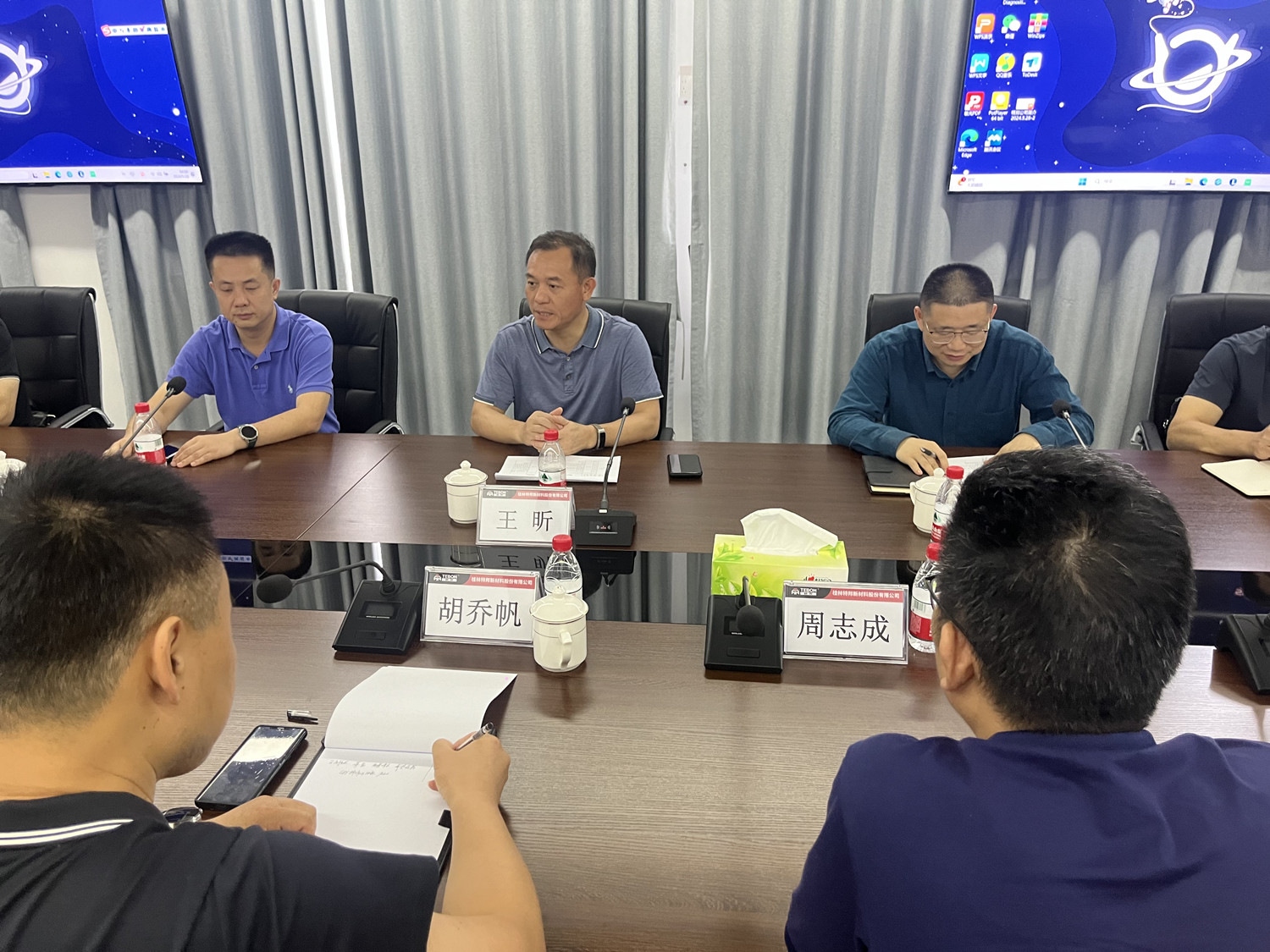 5月28日,桂林市副市长王昕一行到PA捕鱼特邦公司调研,PA捕鱼党委委员、副总经理胡乔帆,特邦公司、工程中心负责人等陪同调研并参加座谈会。