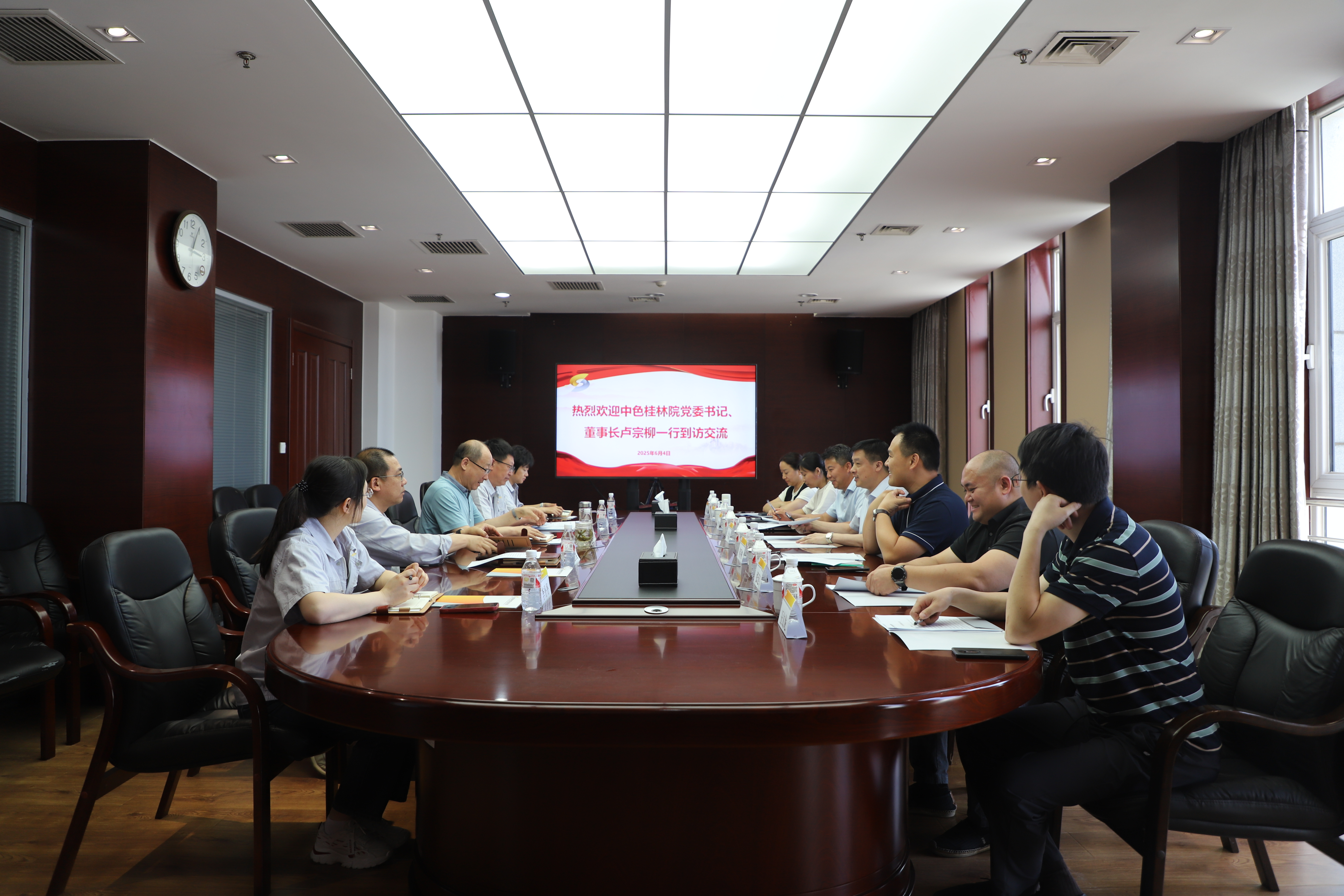 6月4日,PA捕鱼党委书记、董事长卢宗柳一行到中色创新研究院交流座谈。党委委员、副总经理胡乔帆,党委委员、董事会秘书李年友参加座谈交流。中色创新研究院党委书记、执行董事李春光,党委副书记、总经理张向军,党委委员、副总经理赵红运及综合部、科技部负责人出席座谈交流会。