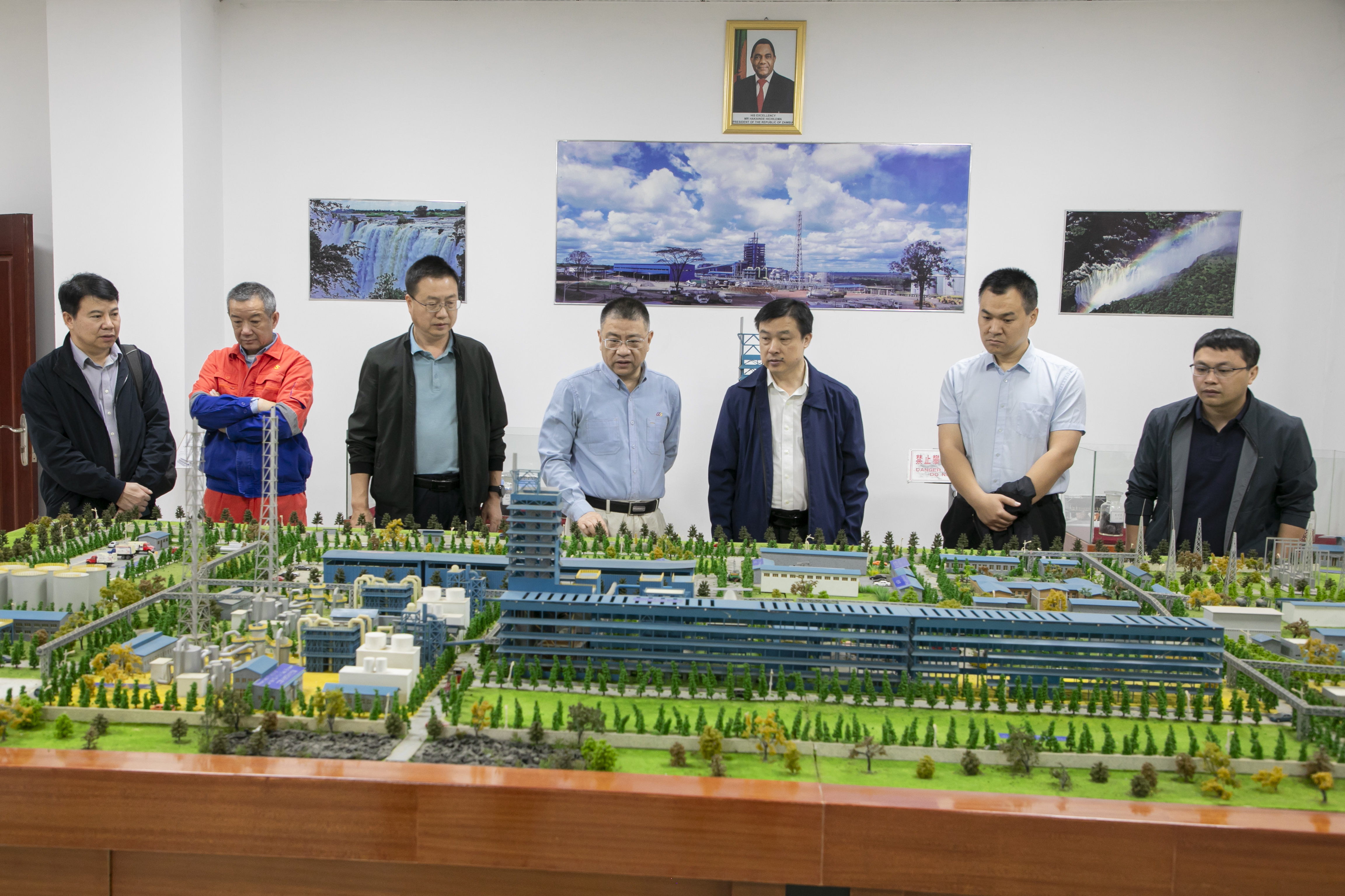 图|卢宗柳一行参观谦比希铜冶炼公司厂区沙盘