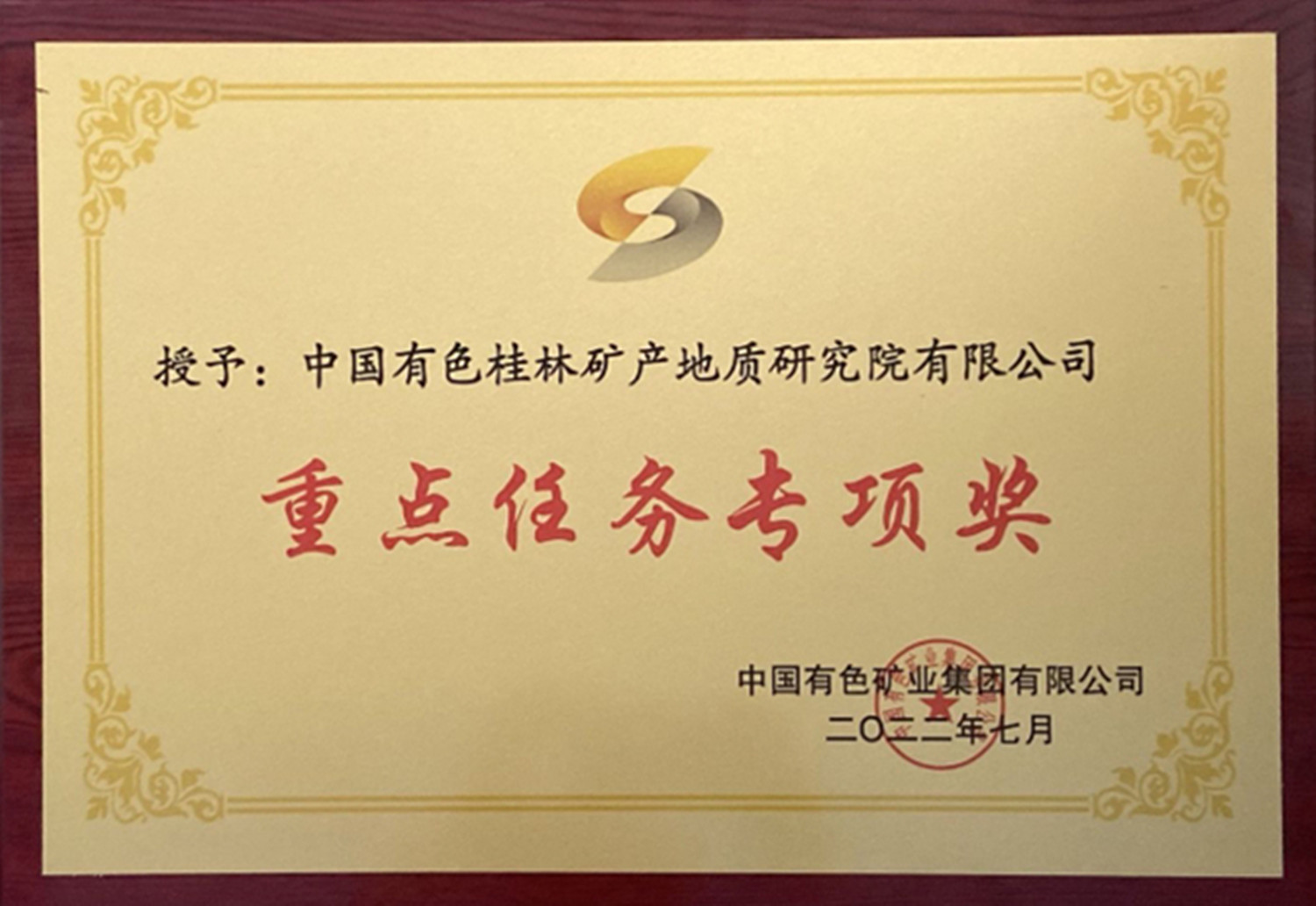 2022年7月,中国有色集团授予公司“重点任务专项奖”,对公司在2021年度配合集团开展环保督察和集团内企业探矿增储工作中表现突出,给予公司“重点任务专项奖”。