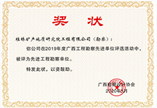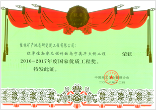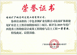 公司秉承“科技领先,质量第一,诚信为本、用户至上;高效低耗、工程永恒;干一个工程,树一个形象,交一批朋友”的经营宗旨,打造了一支“讲信誉、守合同、素质高、技术精、作风硬”的技术团队。2000年以来,完成项目获国家优质工程奖4项,省部级优秀工程勘察一等奖8项、二等奖26项、三等奖30项,广西地球物理学会优秀工程奖2项。